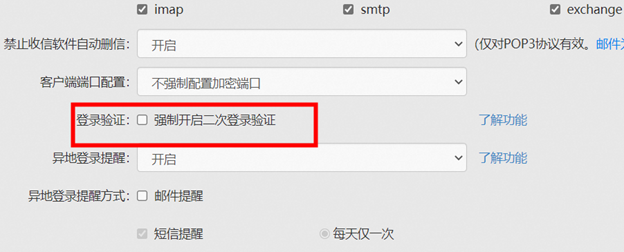 3、检查网易企业邮箱管理后台是否开启强制开启二次登录验证,如果已开启的会无法顺利进行搬家,请关闭。组织机构管理->账号管理->编辑账号->关闭强制开启二次登录验证。